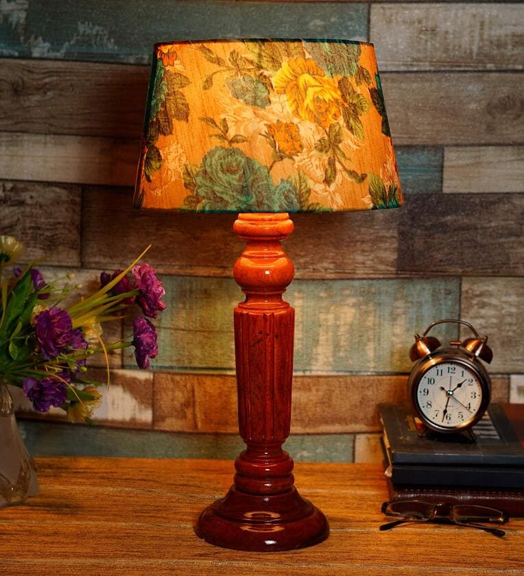 Delmas Yellow & Green Fabric Shade Night Lamp With Wood Base