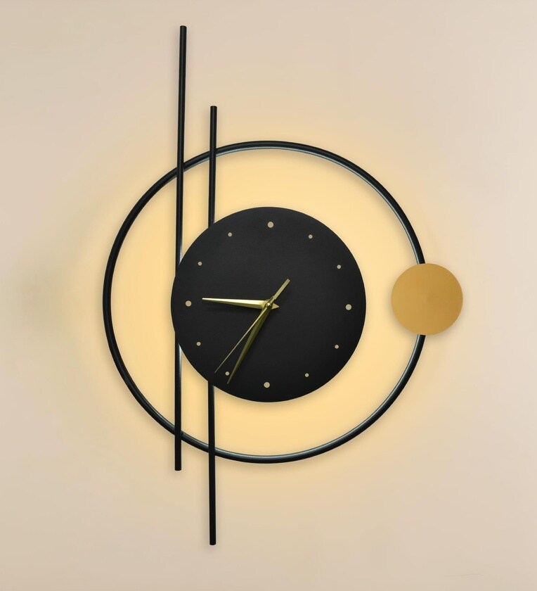 Denric LED Wall Lamp with Clock Modern Decorative Wall Light with 3 Light Modes (Warm, Natural & Cool White) | Bedroom, Living Room & Bedside | 1Year Warranty