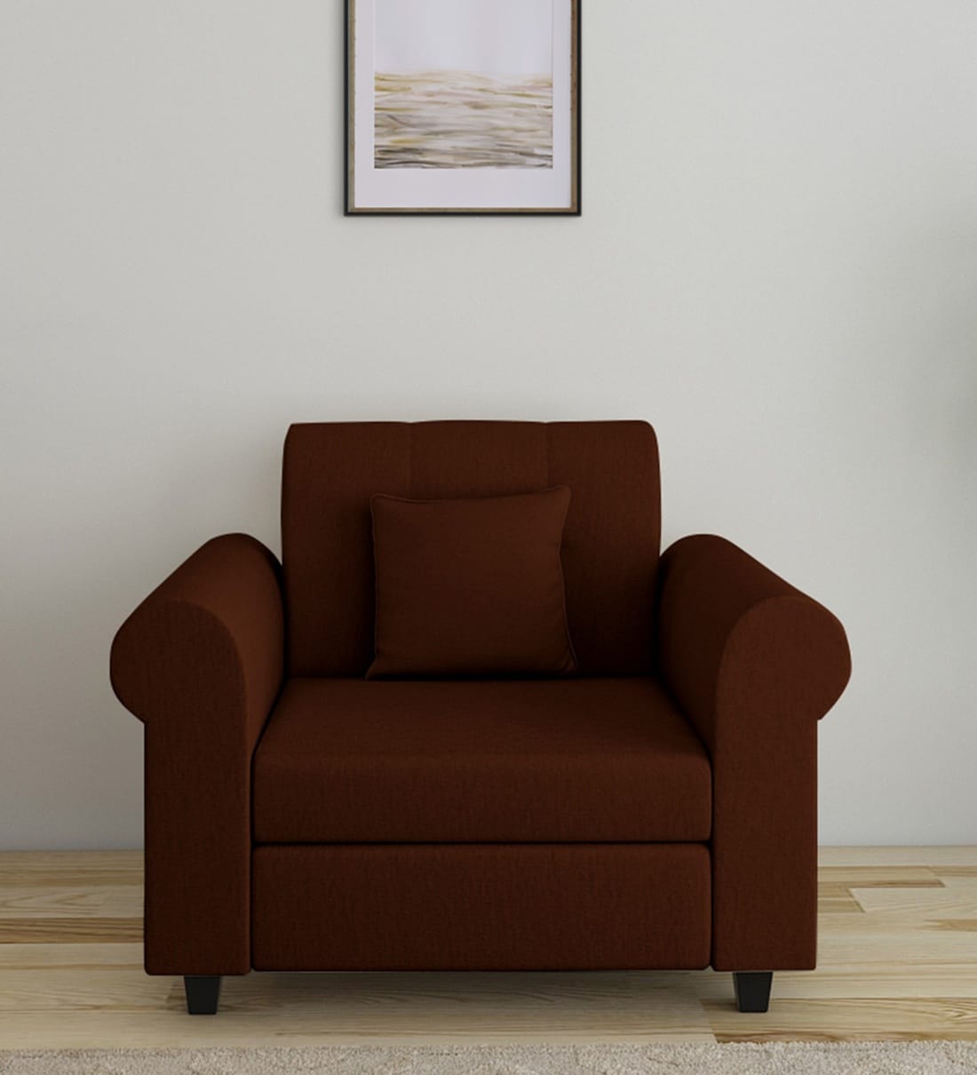 Derado Fabric 1 Seater Sofa in Coffee Brown Colour