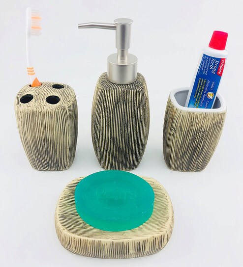 Perfect for storing your toiletries and adding style to your bathroom counter, A gorgeous 4-piece bathroom counter accessories set made of ceramic, PACKAGE CONTENTS : 1 Soap Dish Holder, 1 Toothbrush Holder, 1 Tumbler, 1 Soap Dispenser