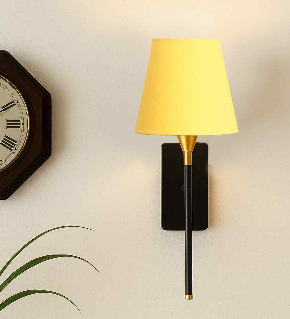 Designer Conical Fabric Shade with Metal Base Premium Wall Lamp-(Yellow)