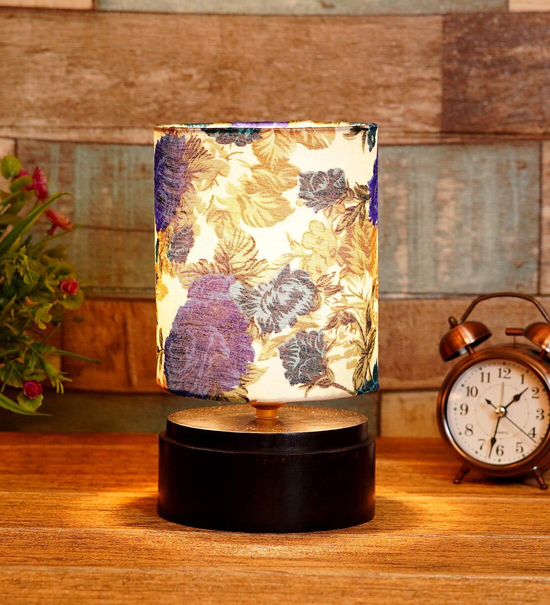 Desmond White & Blue Fabric Shade Night Lamp With Wood Base