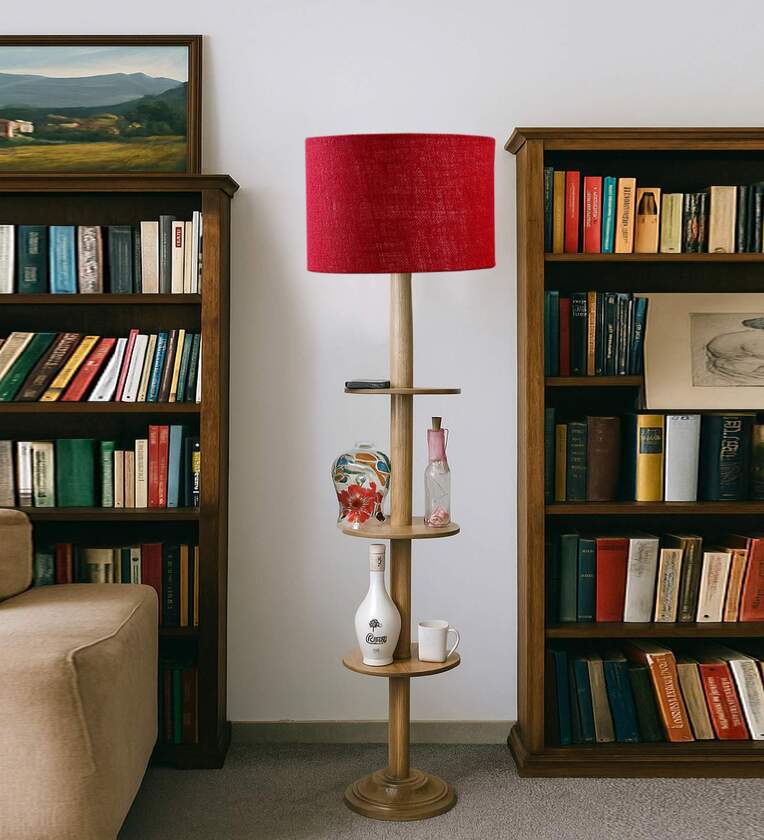 Devansh Blue cotton Drum shade with floor lamp with wood base