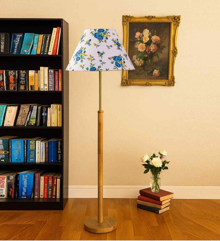 Devansh Multi cotton Drum shade with floor lamp with wood base .-