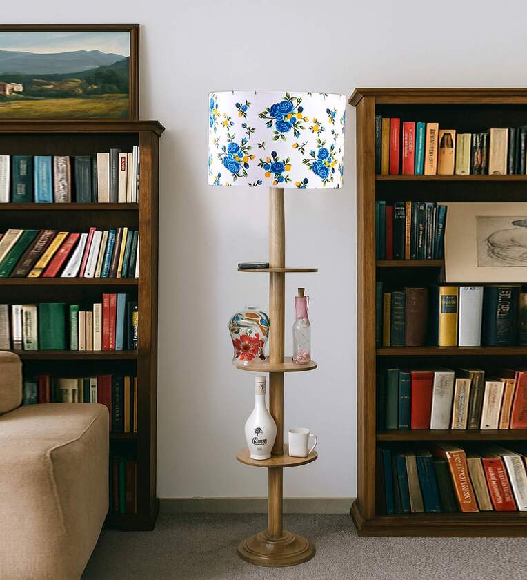 Devansh Multi cotton Drum shade with floor lamp with wood base
