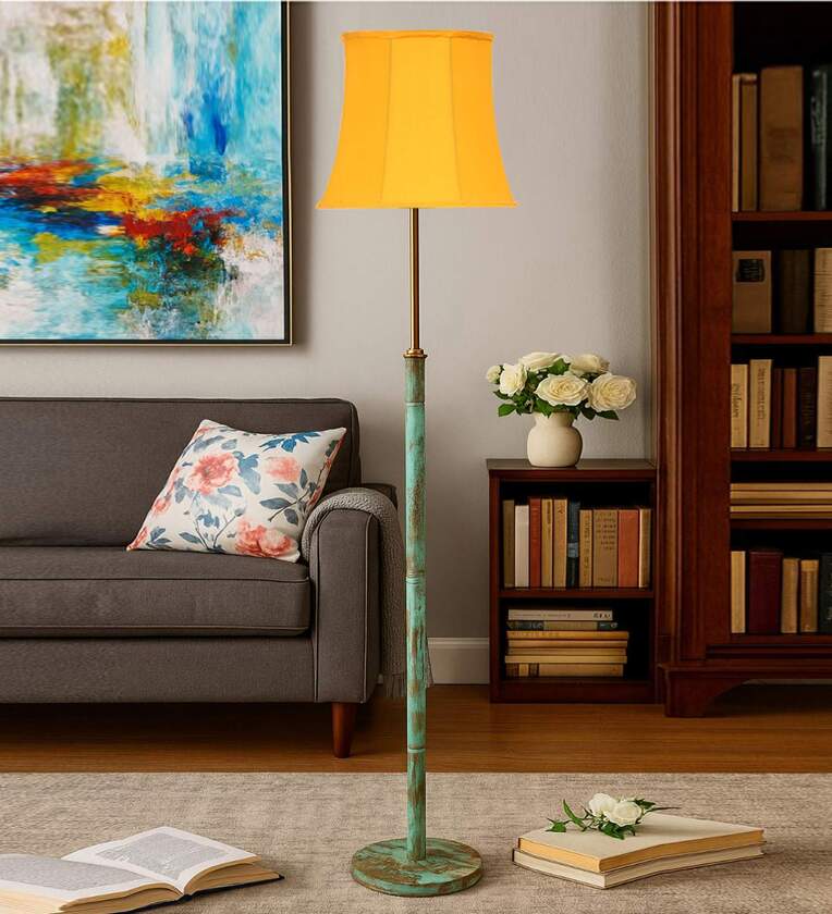 Devansh Soft back Orange cotton shade with Wood Base