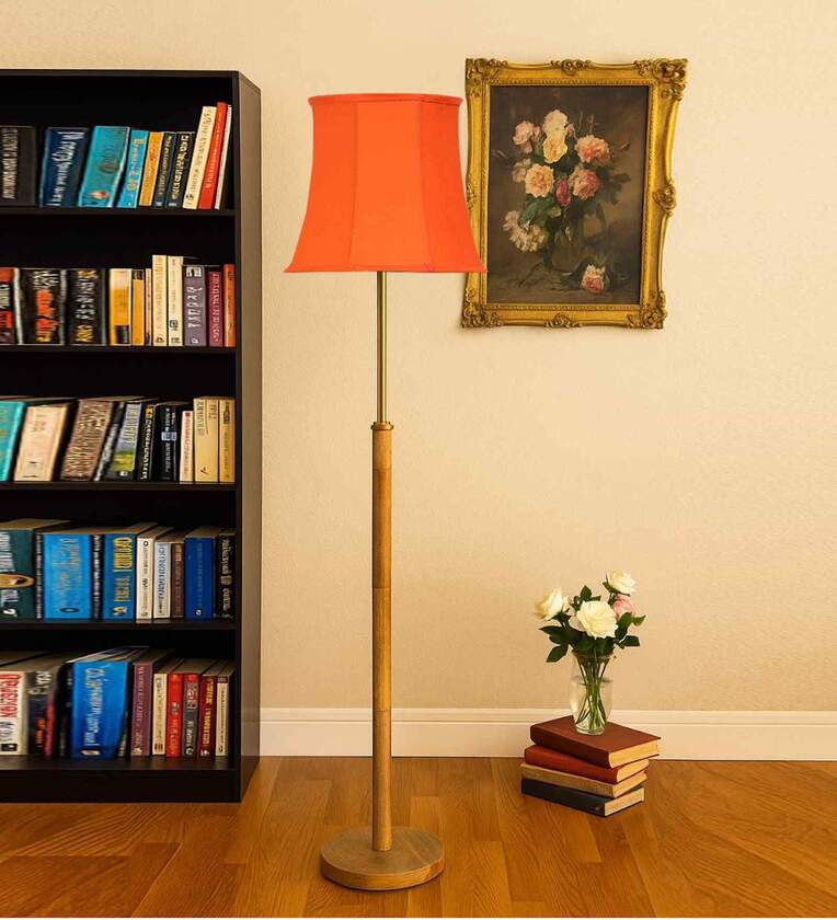 Devansh Soft back Orange cotton shade with Wood Base