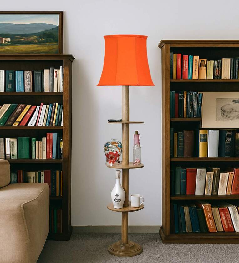 Devansh Soft back Orange cotton shade with Wood Base