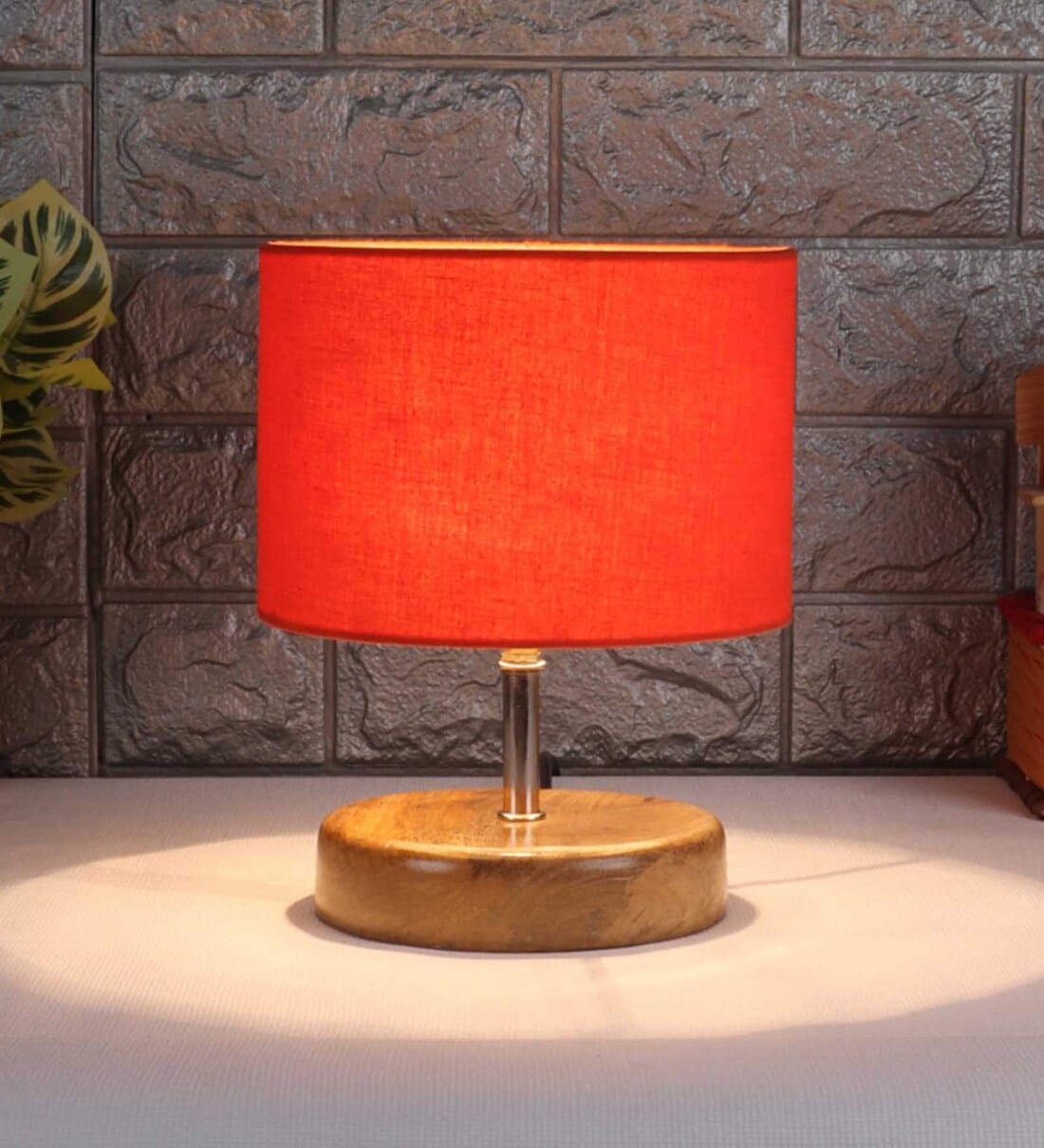 Devansh Wood Table Lamp With Orange Cotton Shade