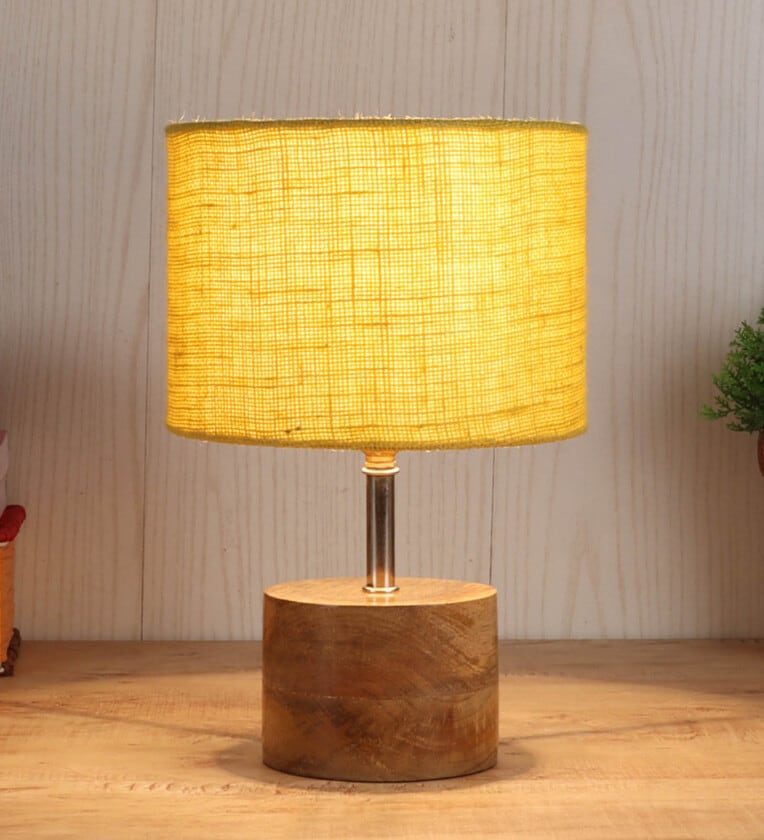 Devansh Wood Table Lamp With Yellow Jute Shade