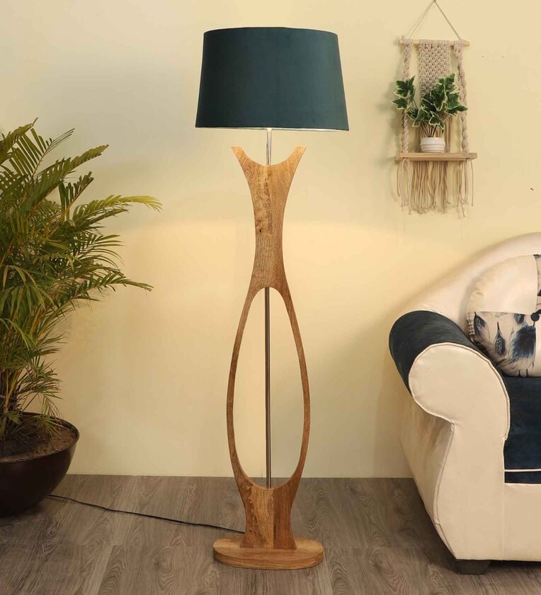 Diseno Grey Fabric Shade Club Floor Lamp With Wood Base
