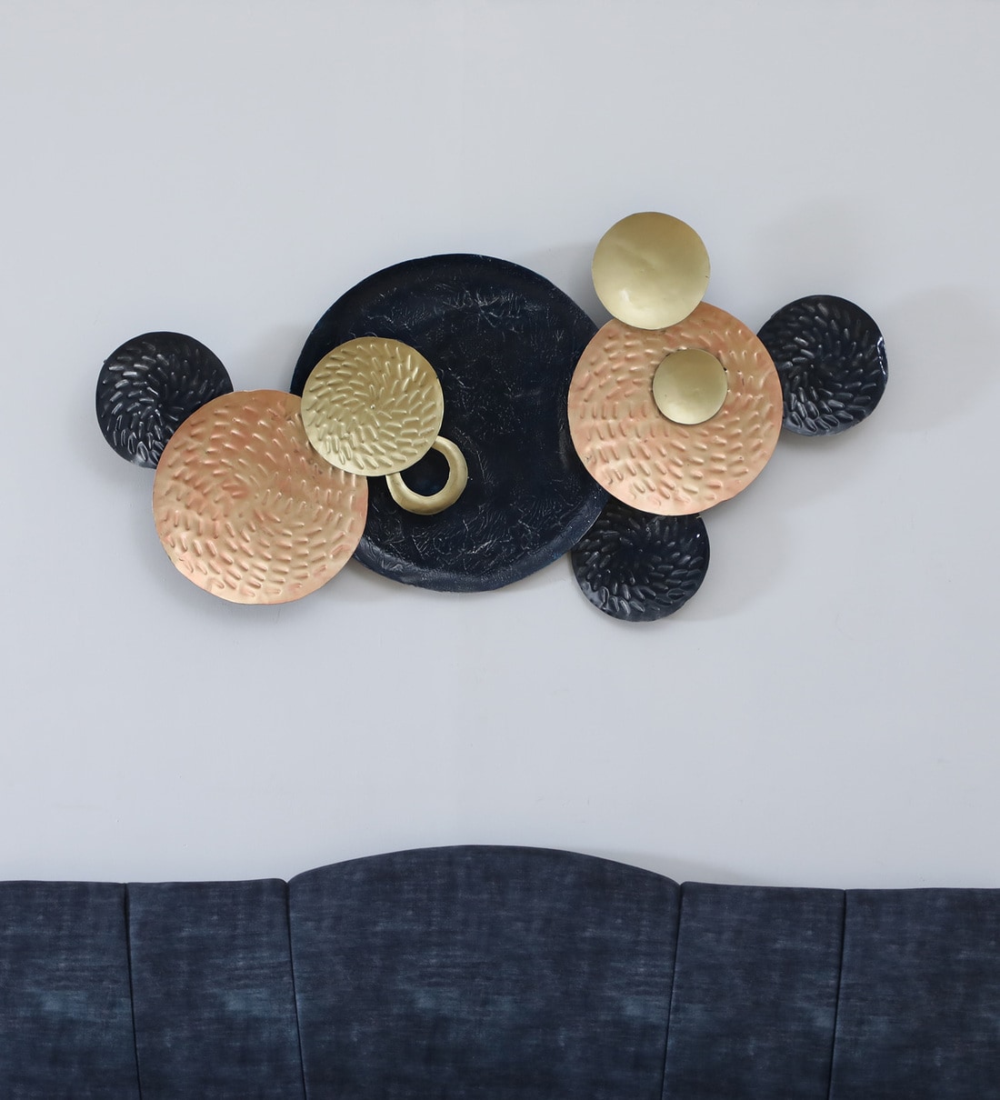 ABSTRACT DISKS METAL WALL DECOR IN BLUE - GOLDEN COLOR SIZE 48"X22" BY TOUGHCRAFTS