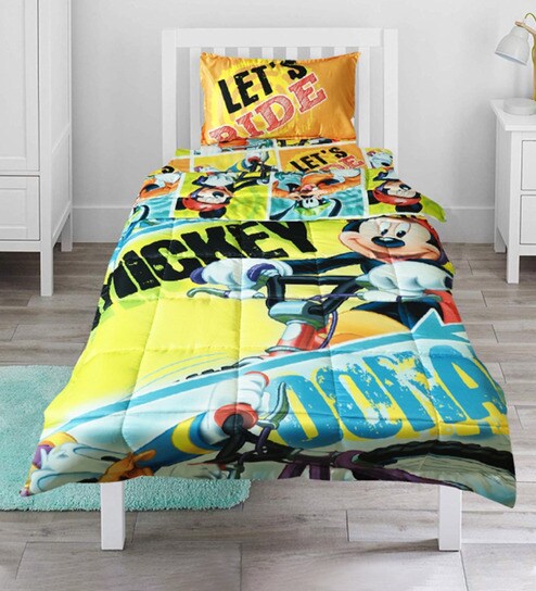 Bring a sense of fun and adventure to cuddle or naptime with this colorful MICKEY MOUSE themed Comforter Set. Kids will feel safe and comfy with their favorite characters and this reversible Comforter Set with vibrant imagery is sure to become their favourite.
