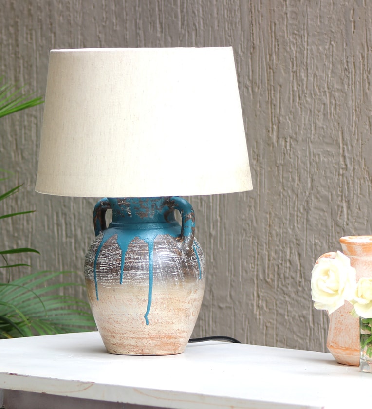 Distress Finish Blue Beautiful Design Clay Table Lamp