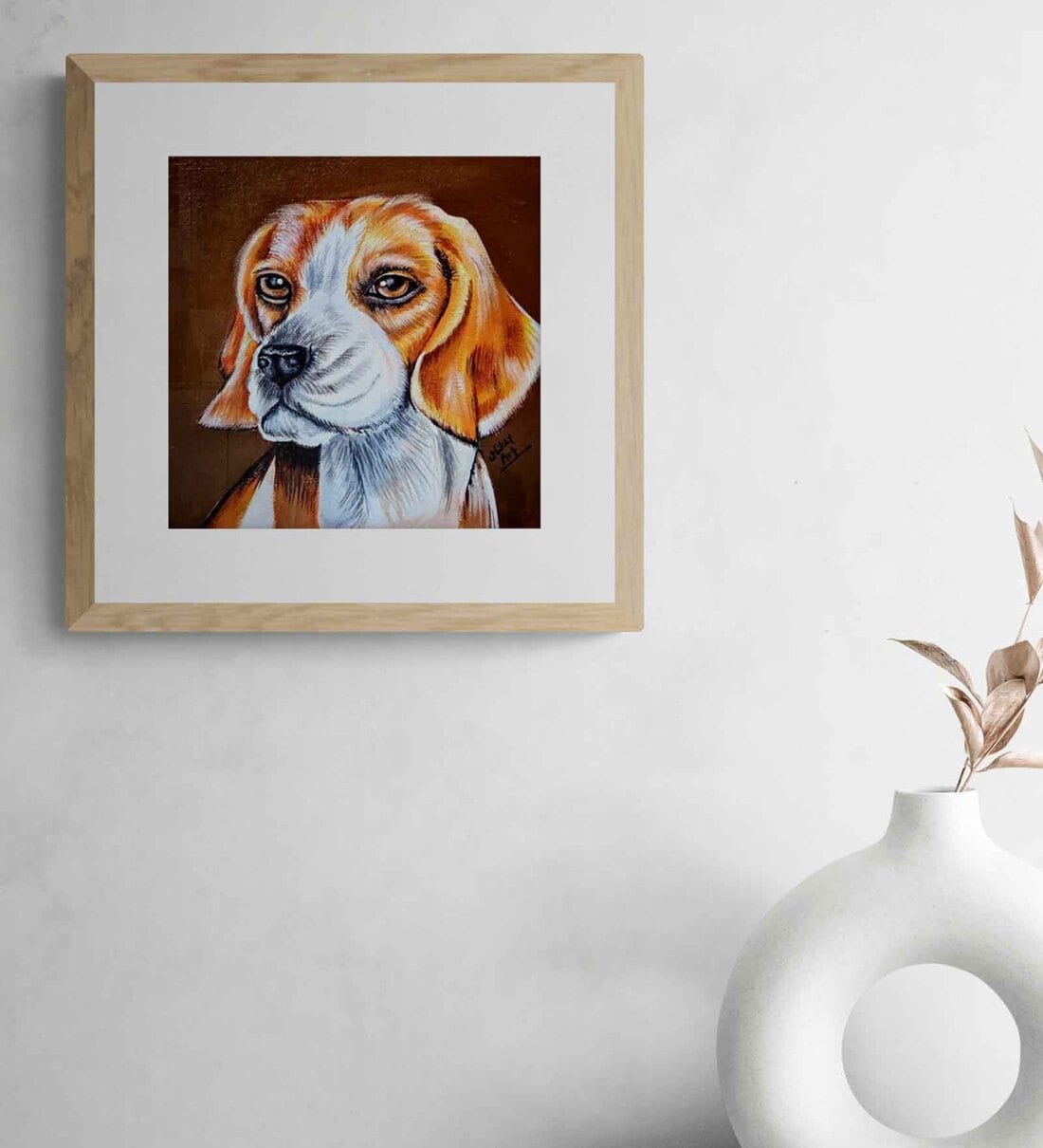 Add meaning to your home & workspace with Atypical Art. Vibrant strokes capture the essence of loyalty and love in this stunning dog portrait. With soulful eyes that seem to speak, the artist skillfully portrays the canine's gentle spirit. Each brushstroke whispers tales of companionship and joy, creating a timeless masterpiece that celebrates the bond between human and hound.What you will receive:- Original Artwork without frame- Certificate of Appreciation for empowering an Artist with Disability (shared over email) Expected delivery time: 7-10 business days