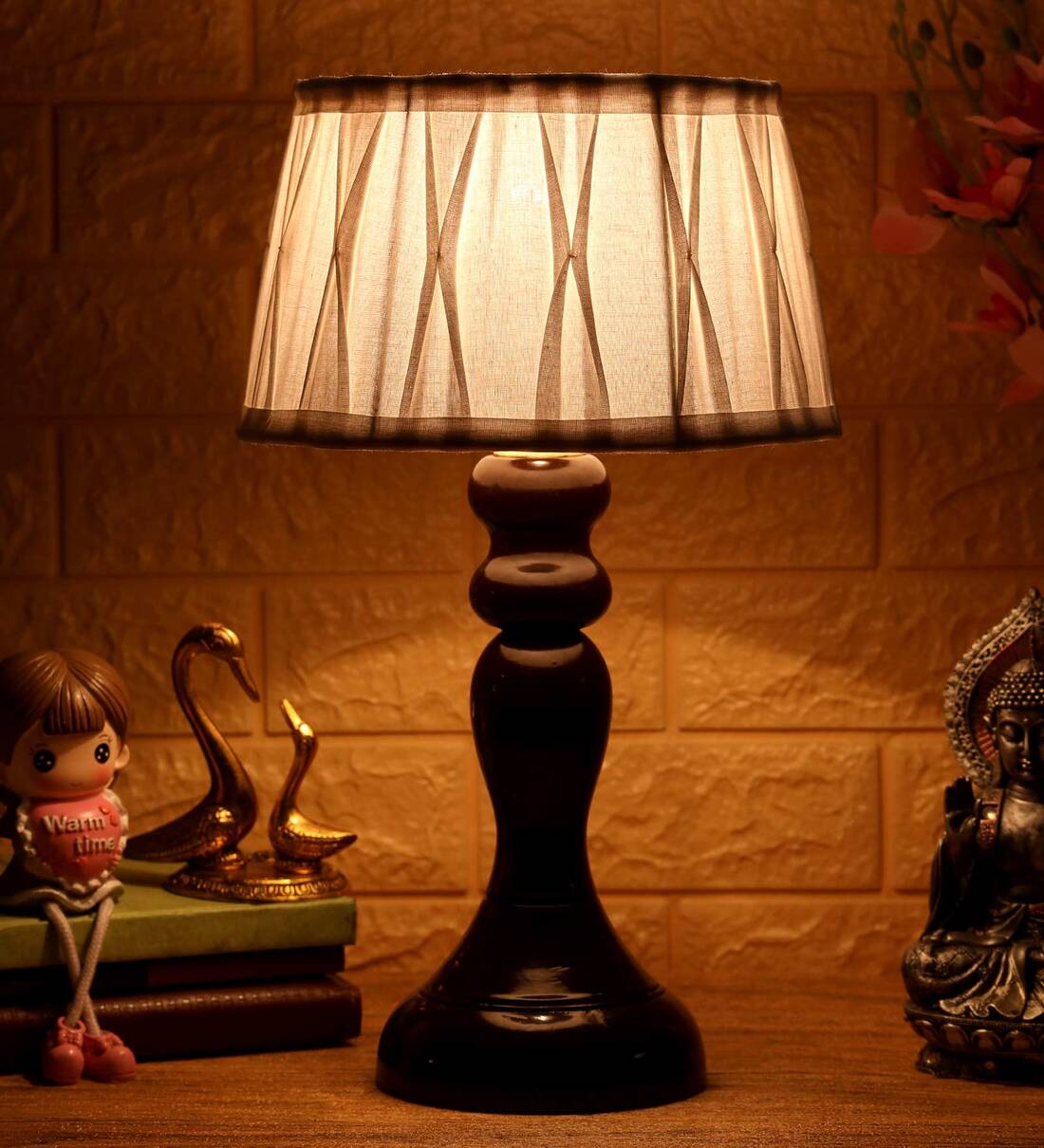 Dorian White Fabric Shade Night Lamp With Wood Base