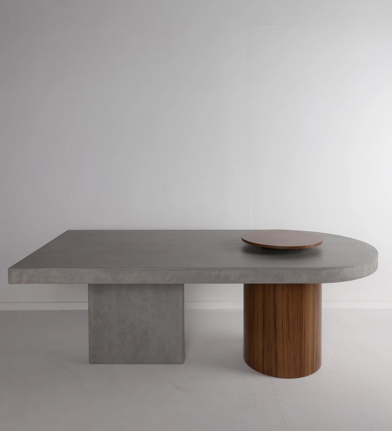 This stunner of a dining table diminishes the difference between a table and a sculpture. Our Dot Square Dining Table comes with a beautiful lazy Susan to match the wooden base. The concrete finish is both attractive and neutral which makes it stand out in any dining area.
