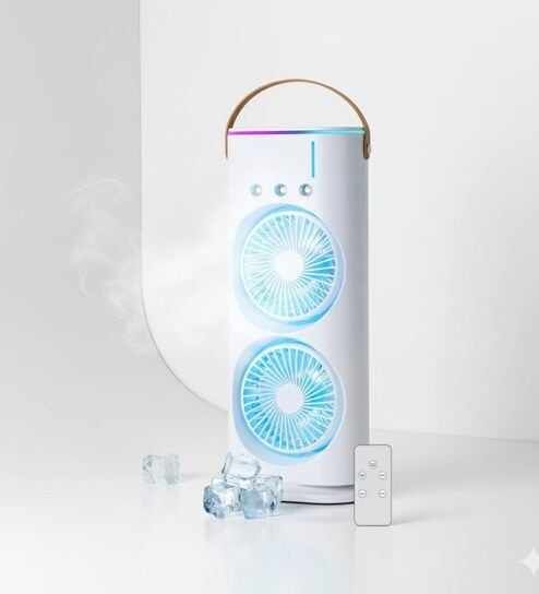 Easy to use USB-C rechargeable, Our tabletop cooling fan is USB-C rechargeable, so it can be used in places where there is no outlet nearby, making it convenient for camping and other outdoor activities. The cooling machine cools with water and has a maximum output of only 10 W.