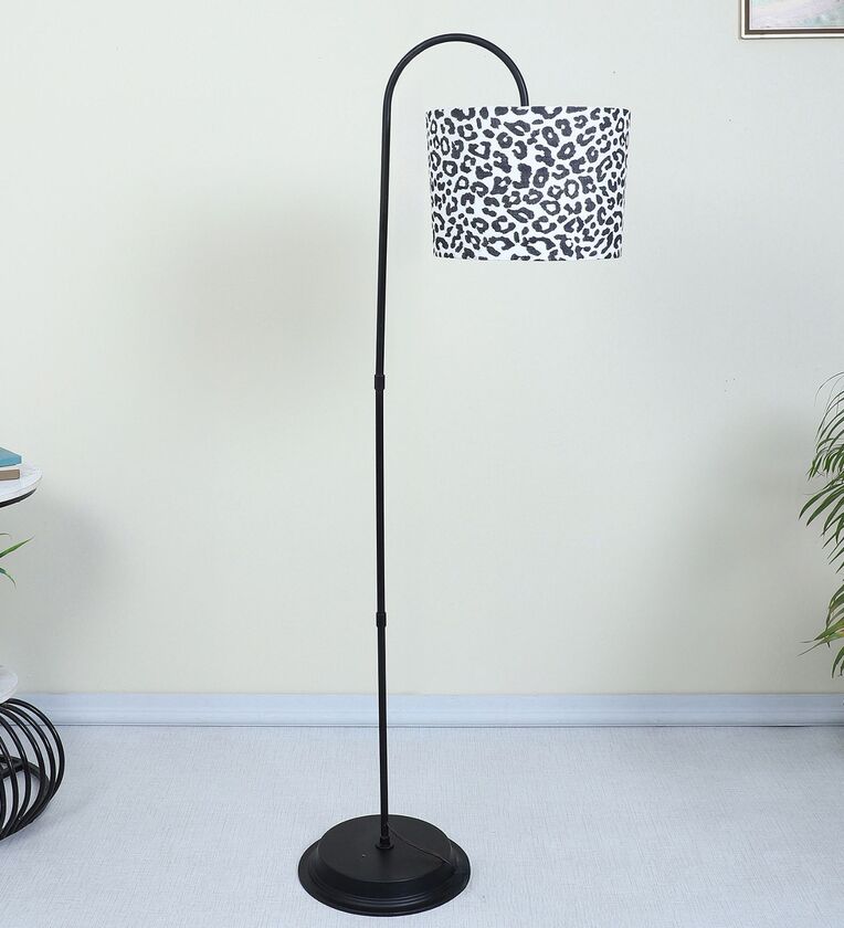Downlighter Modern Black Iron Base Floor Lamps Leopard Print Satin Shade