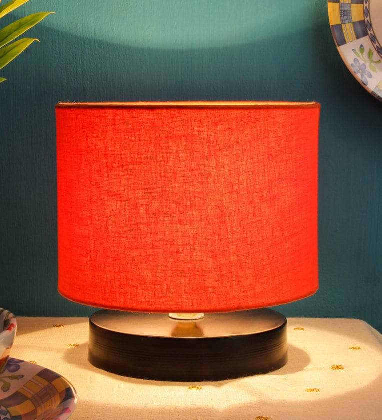 Drum Designer Orange Cotton Shade Table Lamp with Black Base