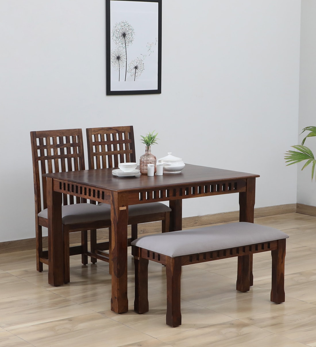 Drusilla Sheesham Wood 4 Seater Dining Set In Scratch Resistant Provincial Teak Finish With Bench