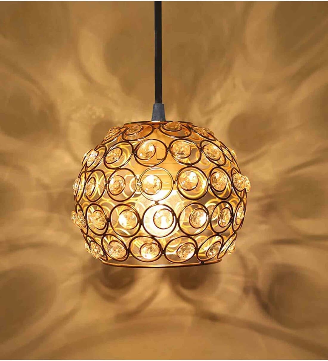 Dual Ring Half Round E27 Holder Gold Crystal Hanging Light