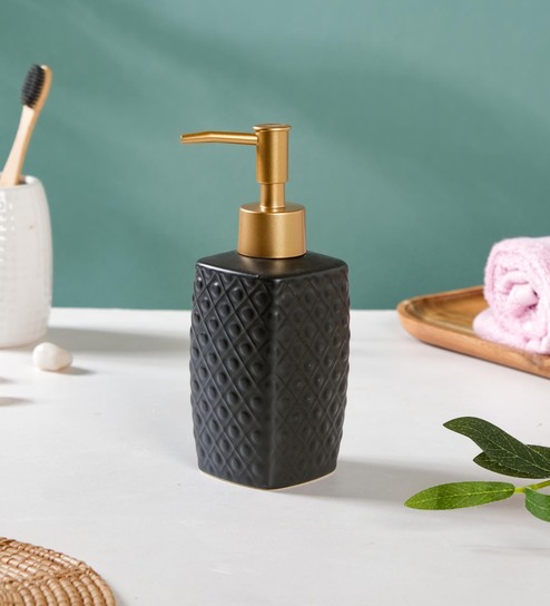 The exquisite soap dispenser comes in a gorgeous finish that works with almost any decor and may also be used as a lotion dispenser or a sanitizer dispenser. The ceramic dispenser is made of a non-porous material that makes it durable and suitable for daily usage. The dispensers' suitable size allows them to be housed on bathroom shelves or on bathroom & kitchen countertops. Dispensers, soap dishes, tumblers & toothbrush holders are just a few of the bathroom accessories that can easily transform the bathroom area. The simple-to-use dispenser has a unique texture that adds a luxurious touch.