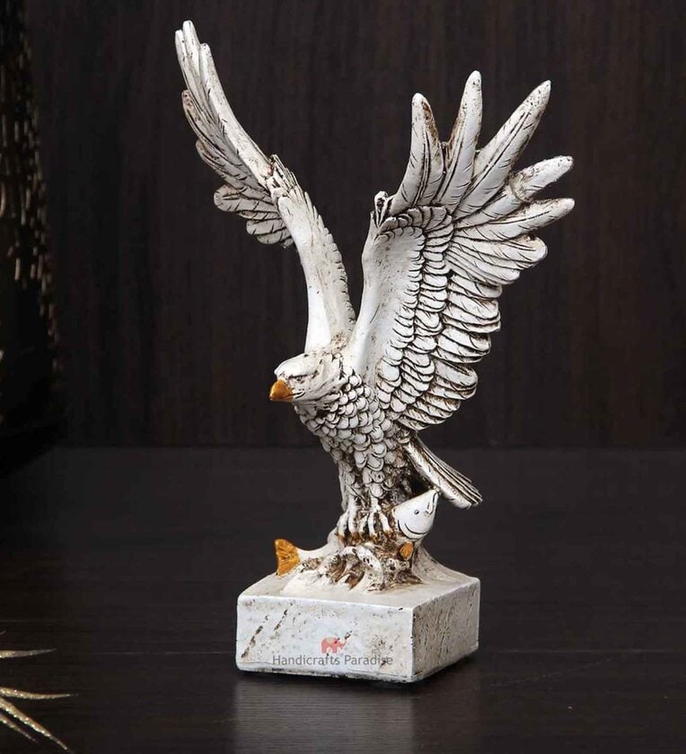 It is a Resin Eagle Showpiece. This exquisite product by Handicrafts Paradise is an amazing piece of art. Made in resin. It is very intricately designed but is very rebust. It can be gifted to the friendsand family on all ocassion. It can also be decorated in homes and showroom.
