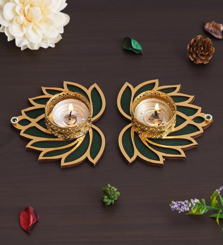 Golden and Green Beautiful Lotus (Set of 2) Tea Light Holders