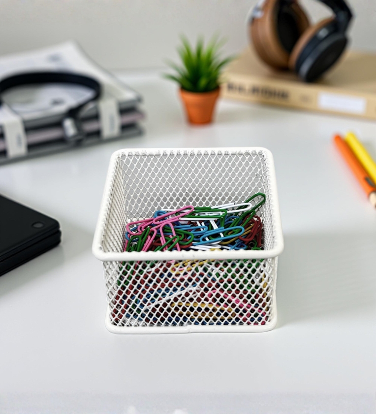 Maximise storage with our Stackable Mesh Storage Organiser, crafted from durable, powder-coated metal for a sleek and sturdy design. Its stackable structure helps optimize space, making it perfect for organizing office supplies, toiletries, kitchen essentials, and more. The open-mesh design ensures visibility and easy access, keeping your space tidy and efficient!