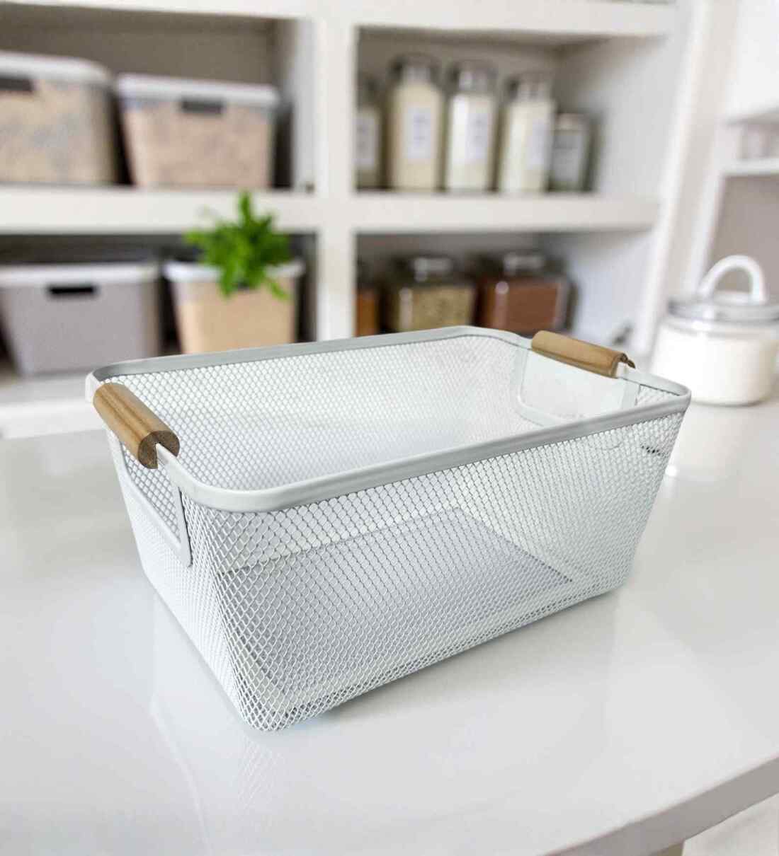 Organise effortlessly with our Mesh Storage Basket, crafted from durable, powder-coated metal for a sturdy yet lightweight design. Its open-mesh structure allows for easy visibility and airflow, making it perfect for storing office supplies, kitchen essentials, toiletries, and more. A versatile, space-saving solution to keep any space neat and clutter-free!
