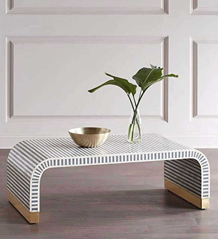 Egyptian Stripe Bone Inlay Coffee Table in Black & White Colour