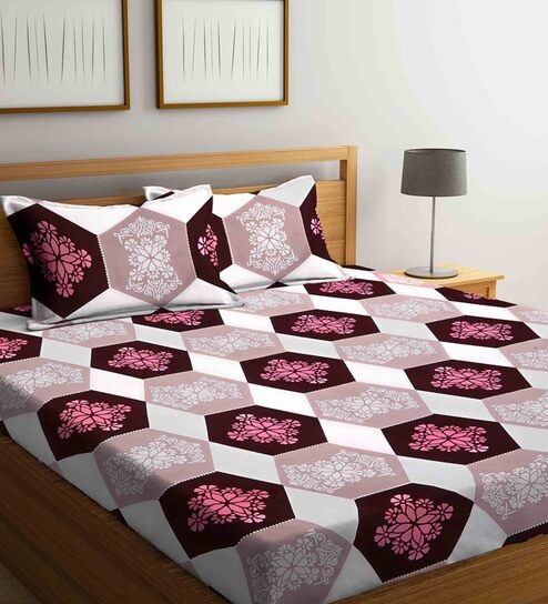 Purple Floral 210 TC Polycotton 1 Double Bedsheet with 2 Pillow Covers