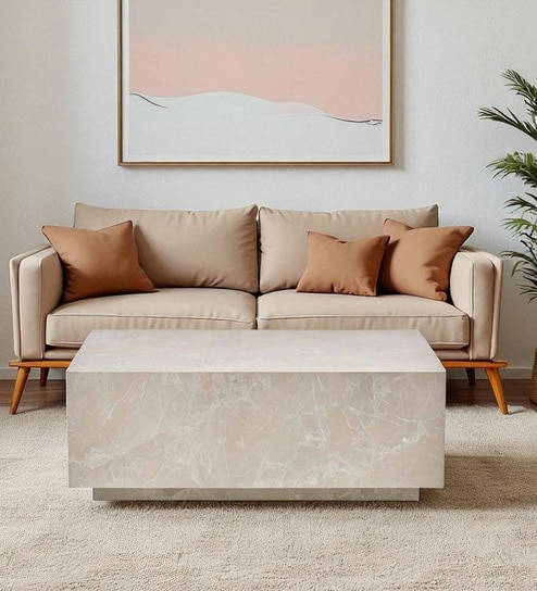 Ekara Sleek Marble Wooden Coffee Table with Stone-Look Finish and Hidden Base Design in Ceramic Colour