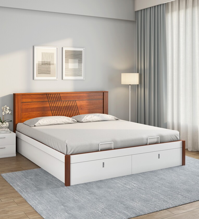 Electra Premier Queen Size Bed in White Finish with Hydraulic Storage