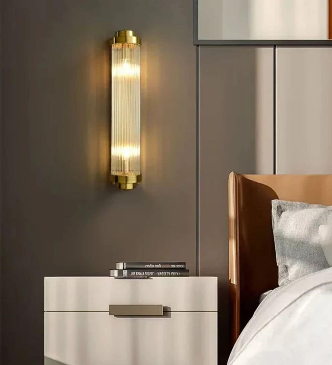 Bring timeless luxury to your space with this elegant crystal wall lamp. Featuring a sleek golden frame adorned with vertical crystal glass panels, it beautifully diffuses light to create a warm and sparkling ambiance. Perfect for bedrooms, living rooms, hallways, or dining areas, this wall lamp adds a touch of sophistication and glamour to any interior d cor.