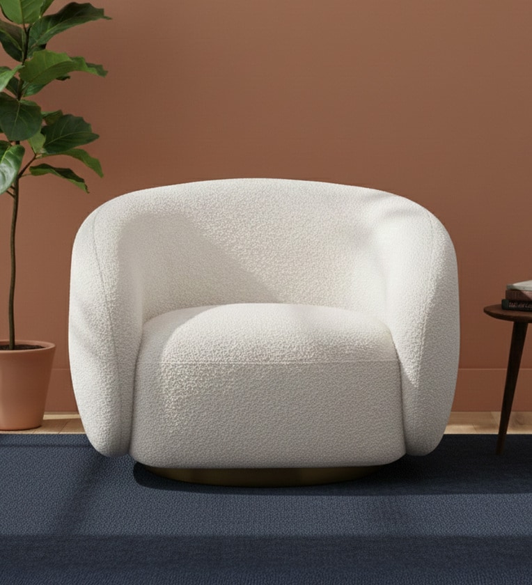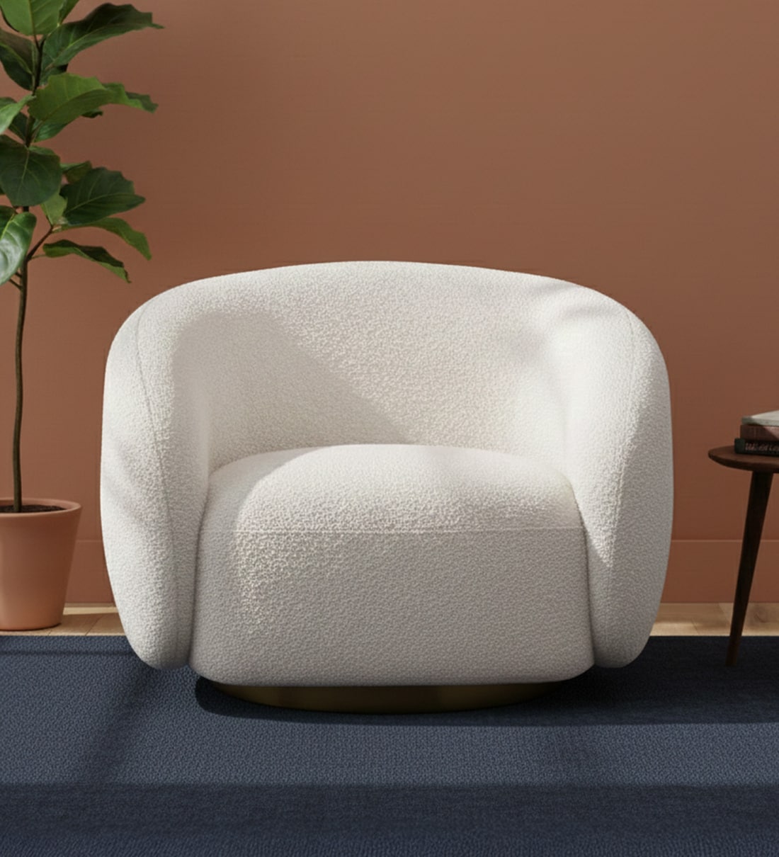 Elegant Ensemble Boucle 1 Seater Sofa In White Colour