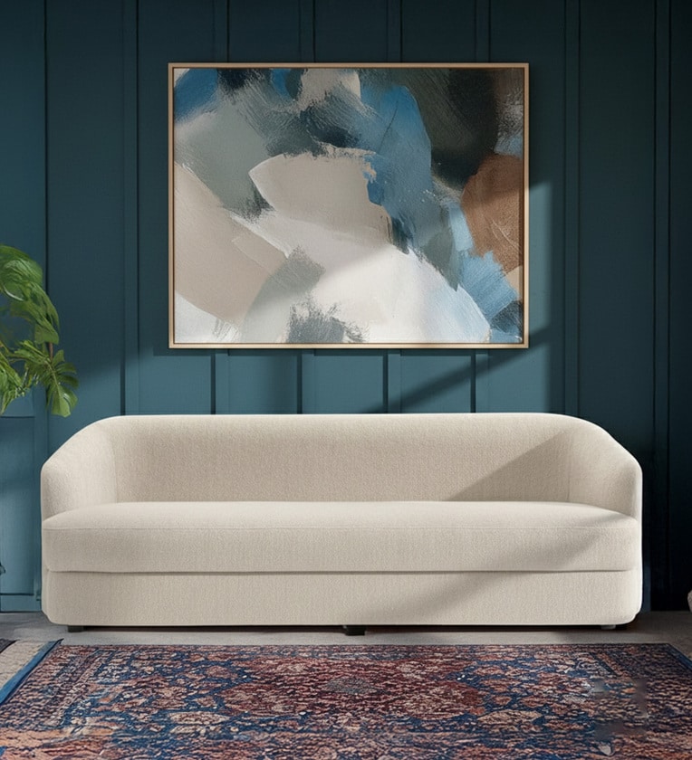 Introducing NestRoots' premium three-seater sofa set, upholstered in elegant boucle fabric with a plain Creme color. Crafted for sophistication, this designer furniture elevates your living room with premium luxury. Experience unparalleled comfort and style with each piece meticulously crafted to perfection. Redefine your home with NestRoots' exclusive collection, where sophistication meets comfort in every detail.