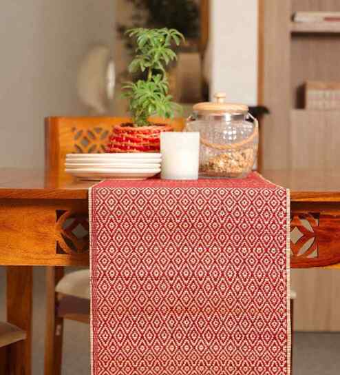 Maroon Natural Grass Handmade Heat Resistant 6 Seater 12X72 Inches Table Runner