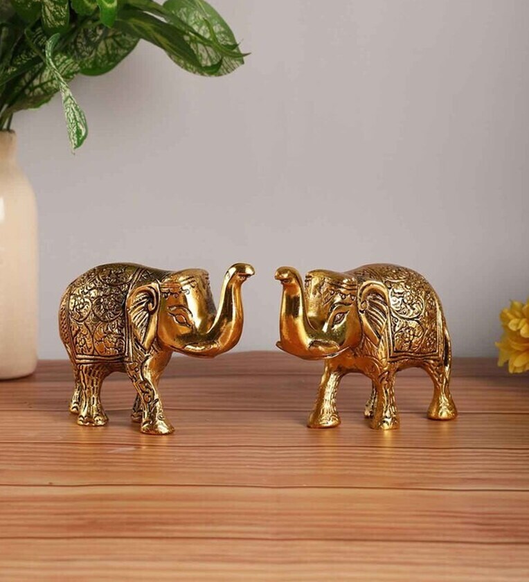 Elephant Set of 2 Gold Aluminium Showpiece