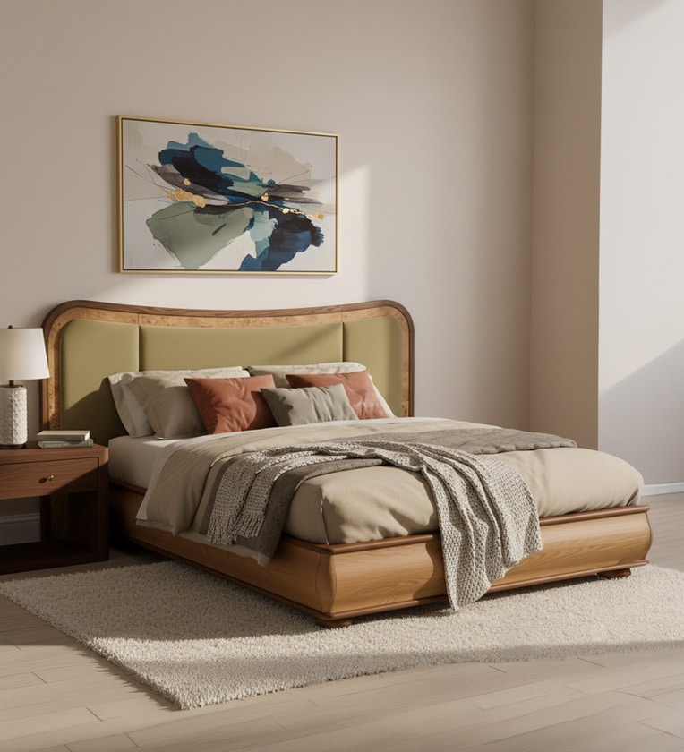 The Nestroots Elowen Softline Bed is designed to create a serene and inviting bedroom environment. Upholstered in plush velvet, its soft-lined headboard and gentle contours enhance both comfort and visual appeal.Built on a robust oak wood frame, the bed ensures durability, while the hydraulic storage system provides convenient space to keep your room organized. Elegant and cozy, the Elowen Bed is ideal for those who prefer calm, refined interiors.