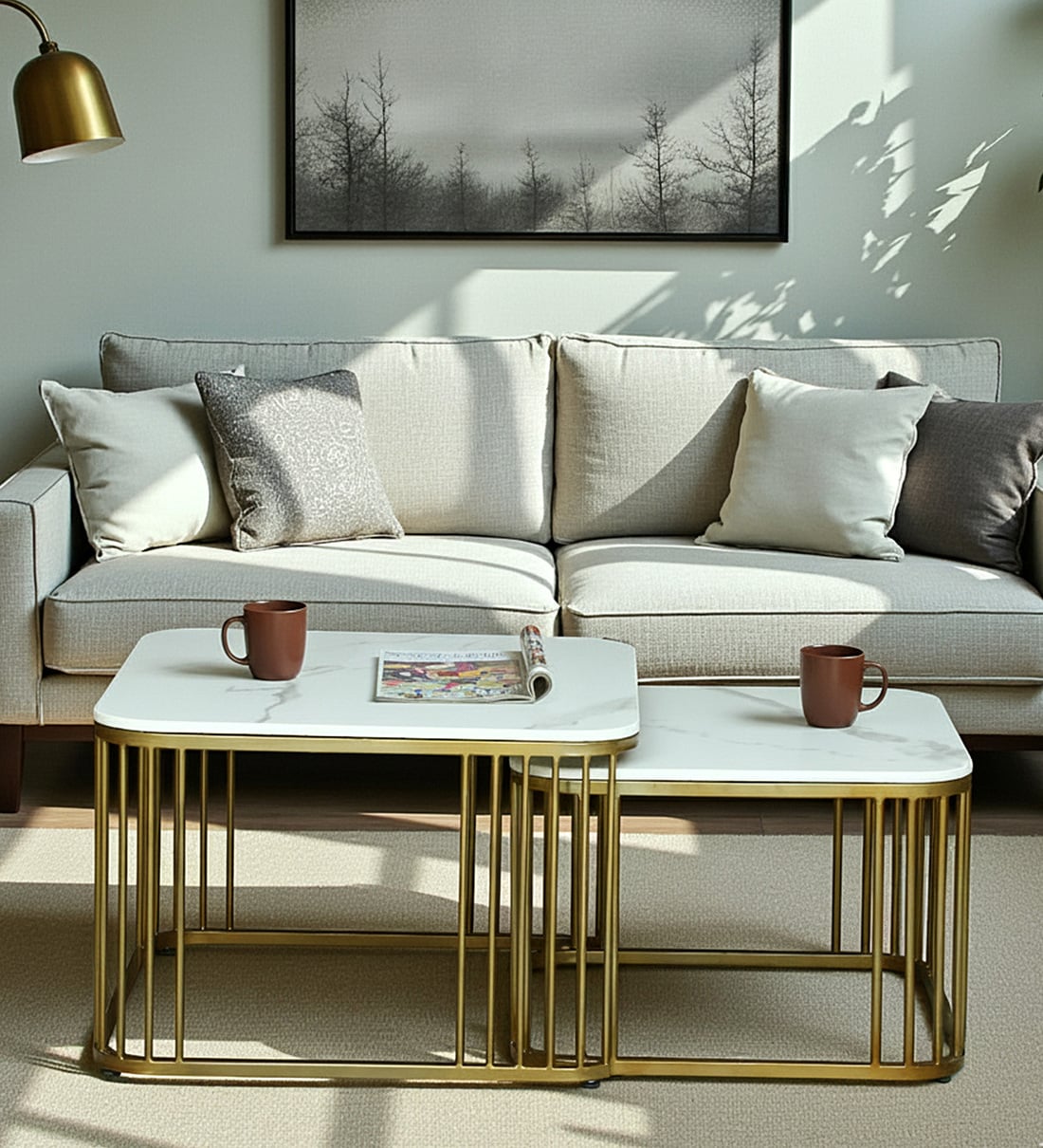 Depending on your screen settings and resolution on your device there may be a slight variance in fabric color and wood polish of the image and actual product.