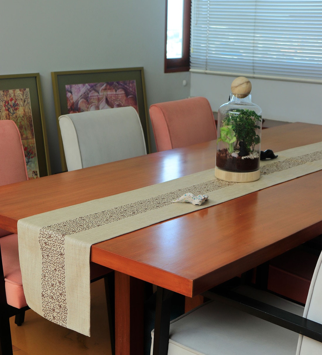 The beautiful design running through the middle of this table runner is a great addition. This beige table runner by ZEBA is the perfect table runner for your home.
