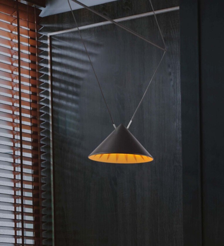 lluminate your kitchen, bedroom, living room with chic and stylish cone pendant lights. These unique silhouettes get their name from the cone shapes that start with a narrow base that gradually widens. They provide ambient, task, and accent lighting making them a universally adored fixture. Cone-shaped pendant lights are a dazzling display of form and function. Available in two colours orange, black with orange.