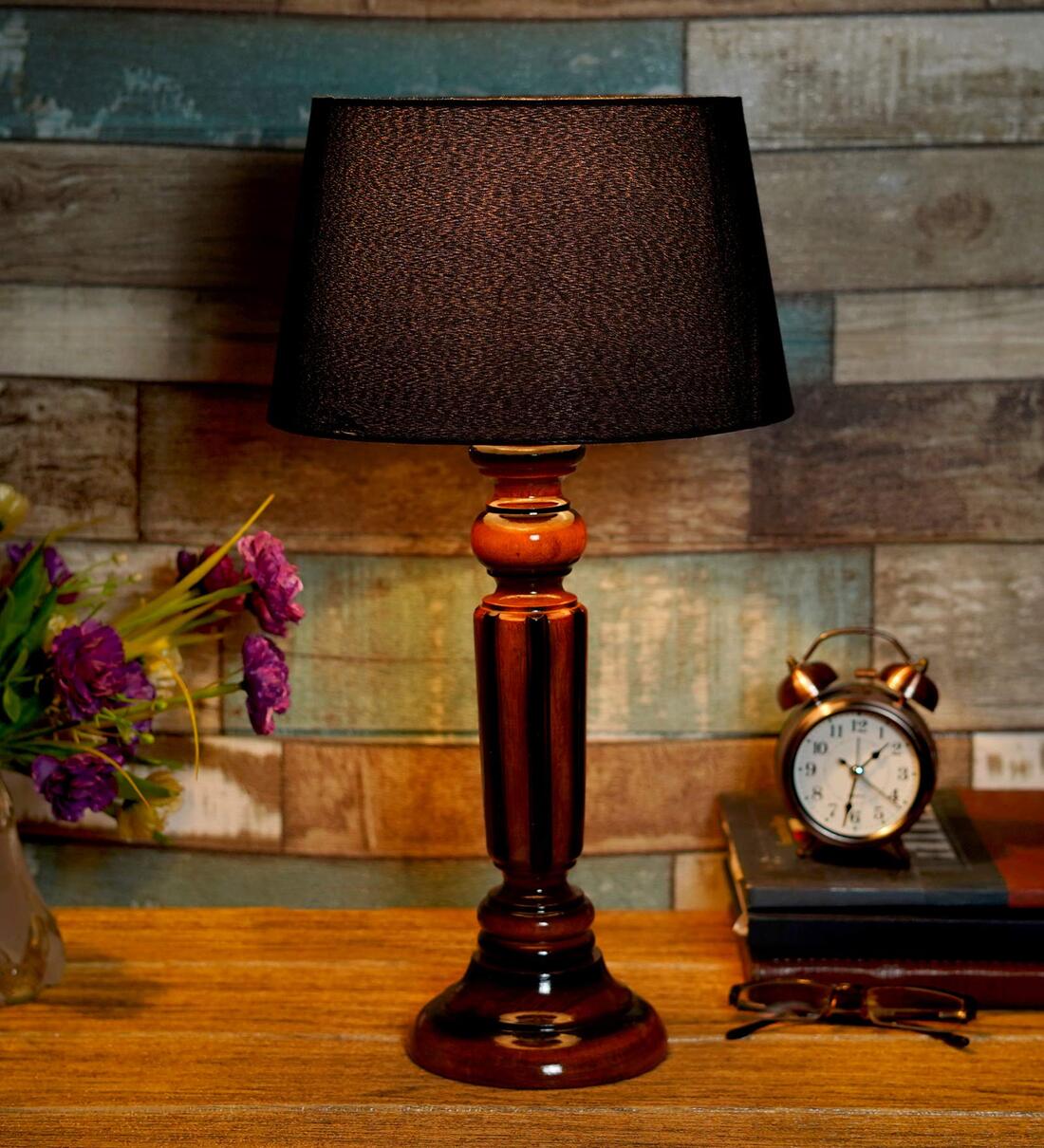 Emphasis Black Fabric Shade Night Lamp With Wood Base