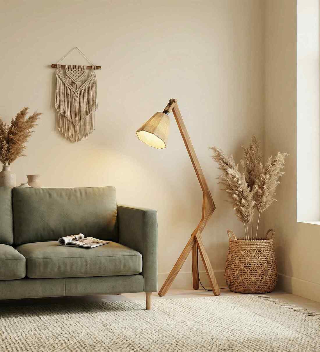 Emphasis Wooden Floor Lamp with Jute Shade & Brown Base
