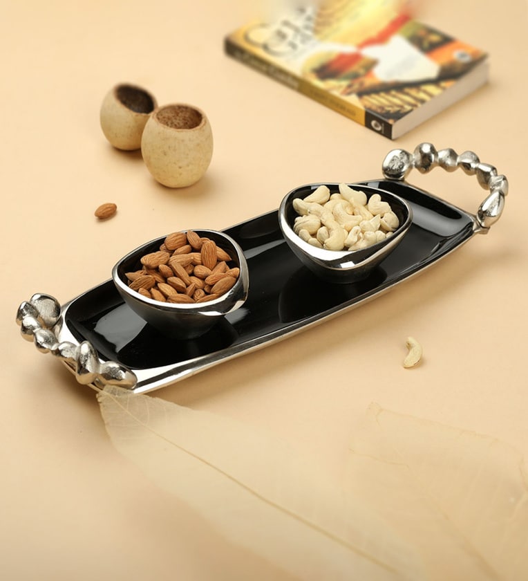 Enamel Blue & Silver Aluminium (Set of 3) Serving Bowl