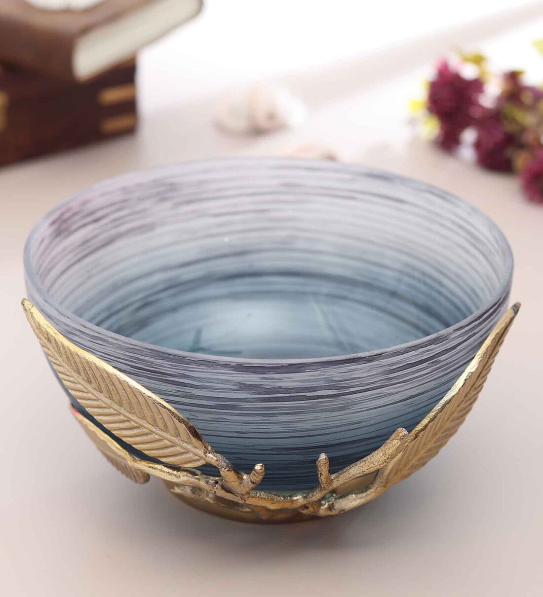 Enchanted Vine Glass Bowl in Wavy Grey and Gold