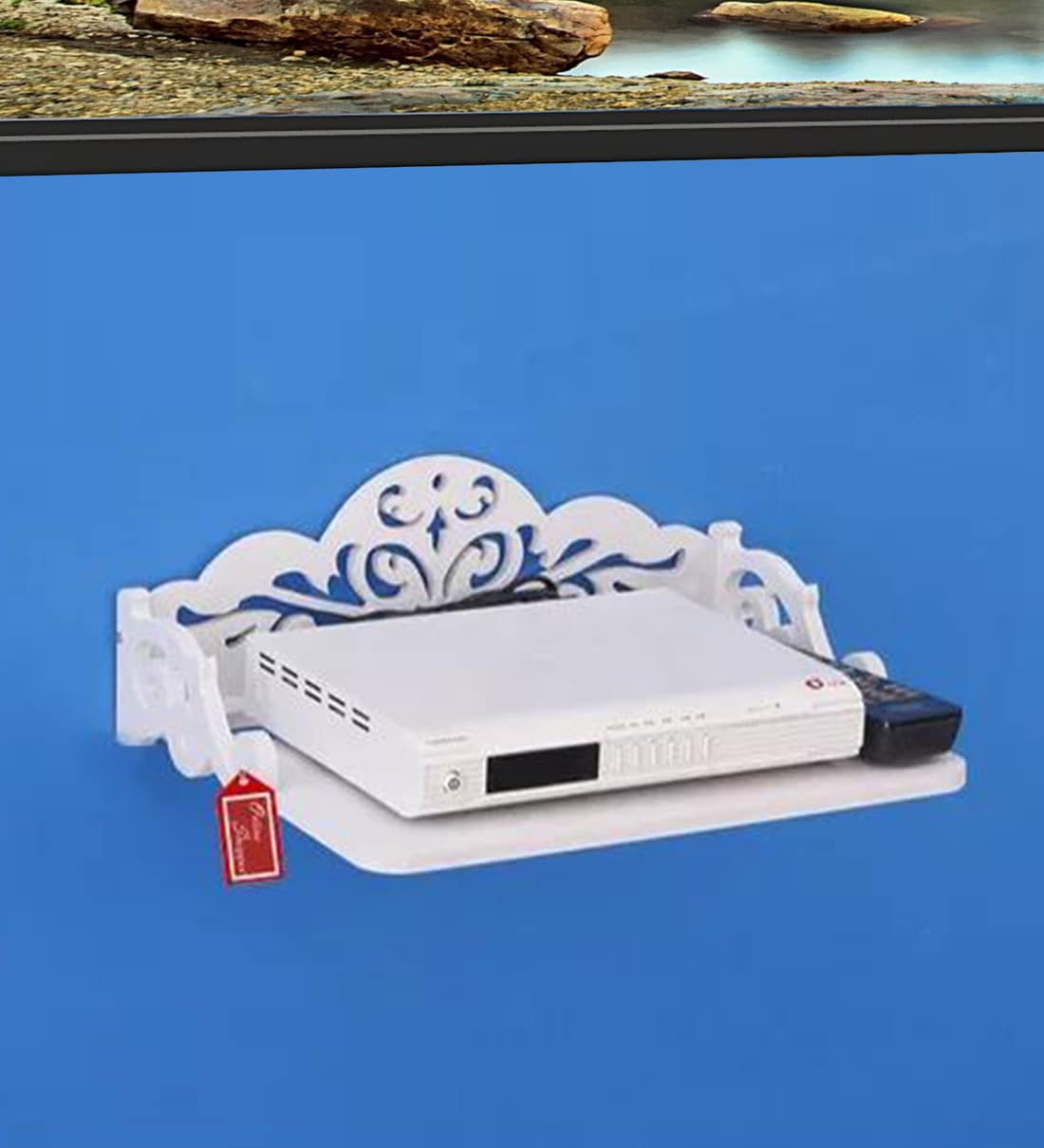 Keep your set-top box firmly on this super stylish set-top box stand. The wall mount has been designed keeping in mind utility and aesthetics both. It has a sturdy yet stylish design, which enables you to keep your set-top box at its place on the wall & give your living room a pleasant look. It allows for better wire management and comes with a load-carrying capacity up to 2 Kgs.
