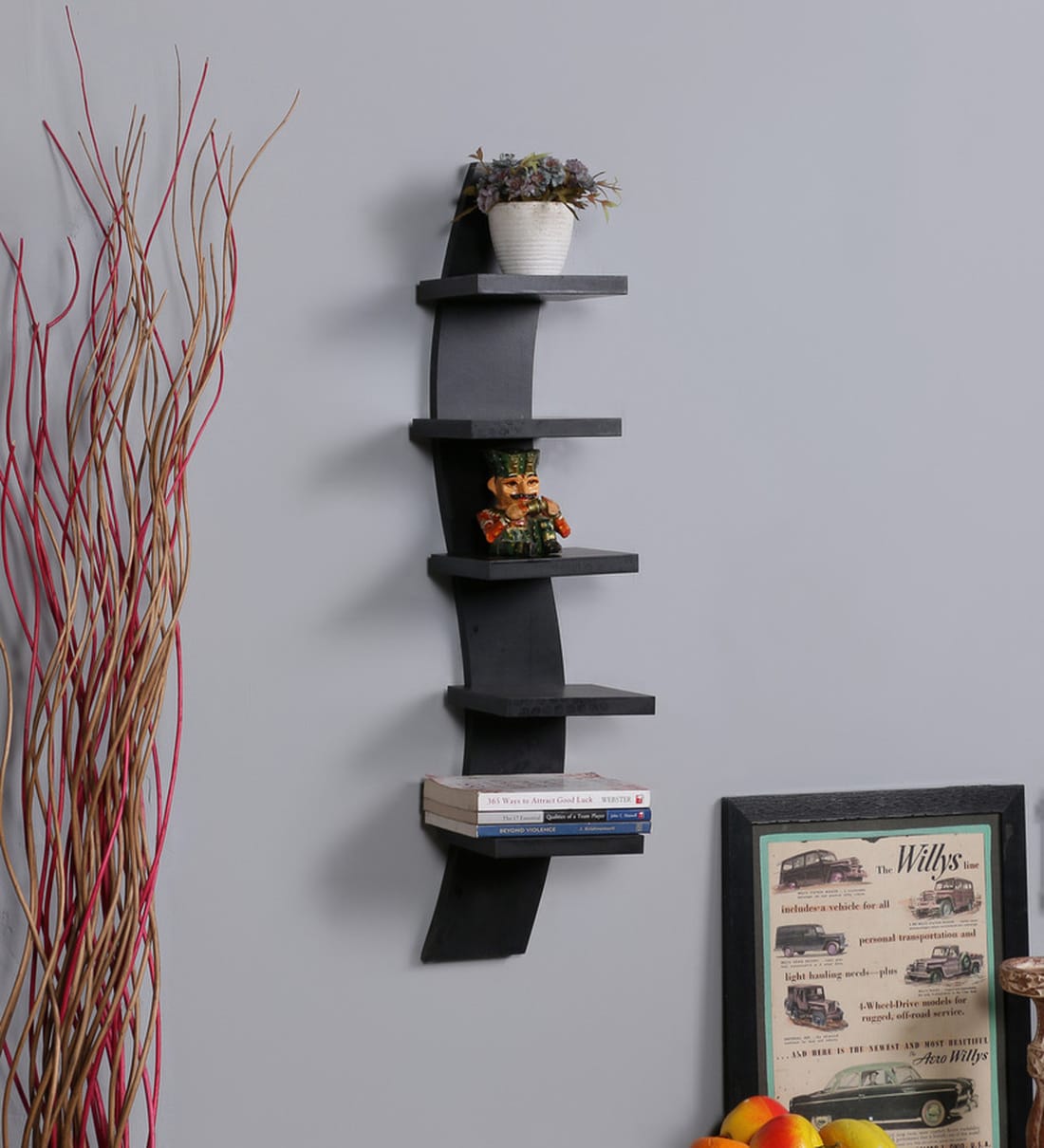 1 Wall Shelf with hooks for wall mounting